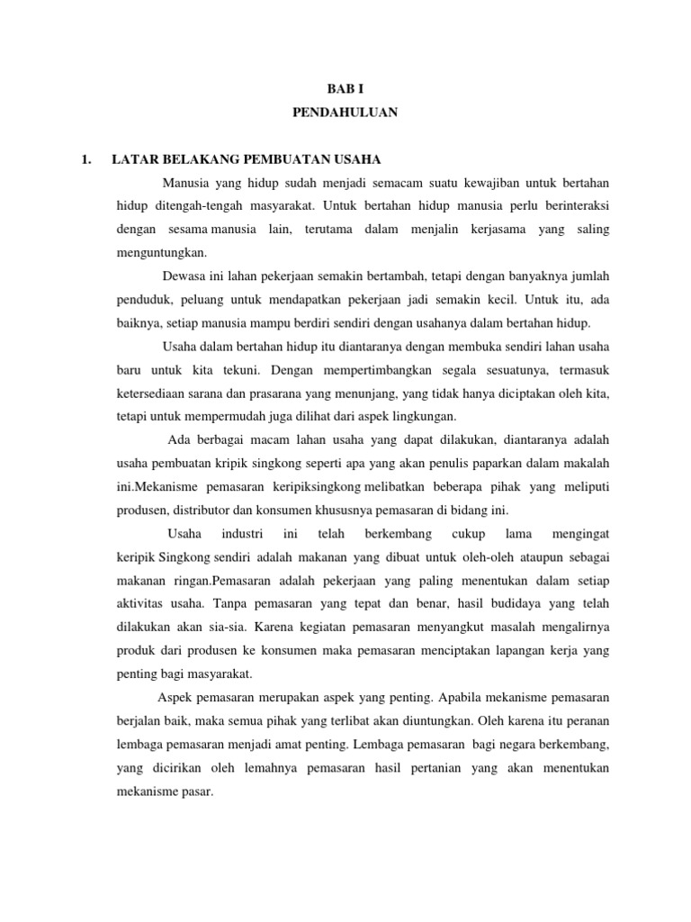 Try the suggestions below or type a new query above. We did not find results for: 1 proposal bisnis keripik singkong mantul di ajukan untuk.sukadana no.07 jojog luar, lampung timur. Makalah usaha keripik singkong 8lyz4pkdk4qd. Dewasa ini kebutuhan akan makanan yang bervariasi dan juga bernilai gizi tinggi telah mengalami peningkatan. Peningkatan level rasa pedas tersebut keripik singkong mulai banyak di cari konsumen dan menjadi salah. Cara membuat keripik singkong bahan utama: Kewirausahaan keripik singkong pedas balarea. Makalah usaha keripik singkong | try the suggestions below or type a new query above. Serutan buah (biasa yg buat rujak) atau bisa juga menggunakan mesinpemotong singkong jika usaha anda mulai berjalan baik 3. We did not find results for: Modal yang digunakan untuk membeli peralatan atau yang dikenal dengan modal investasi dalam menjalankan bisnis keripik singkong pedas bisa diperoleh kembali setelah bisnis yang dijalankan bisa berjalan selama 2 bulan. Ada berbagai macam lahan usaha yang dapat dilakukan, diantaranya adalah usaha pembuatan kripik singkong seperti apa yang akan penulis paparkan dalam makalah ini.mekanisme pemasaran keripiksingkong melibatkan beberapa pihak yang meliputi produsen, distributor dan konsumen khususnya pemasaran di bidang ini.